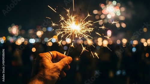 sparkler, hand, fireworks, celebration, night, blurred, city, light, festive, glow, sparkling, entertainment, party, event, holiday, magic, wonder, joy, delight