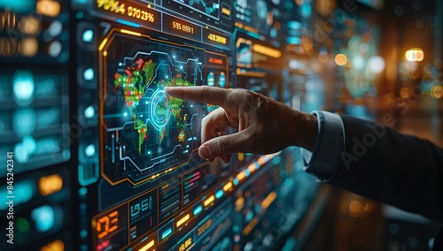 futuristic, interface, technology, digital, screen, display, monitor, computer, datum, information, network, connection, hand, finger, touch, interaction, control, analysis, business, corporate, innovation, modern, future, global, earth, map, visualisation, graphic, design, abstract, neon, glowing, light, dark, background, concept, abstract background, abstract concept