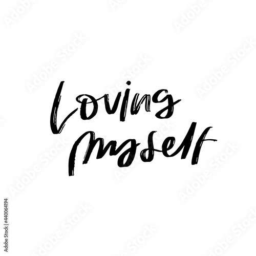 Hand Lettered Quote Loving Myself, Vector Rough Textured Hand Lettering, Modern Calligraphy, Positive Inspiration