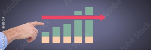 Hand pointing with colorful chart statistics