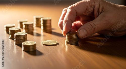coin, money, stack, hand, finance, investment, saving, wealth, business, gold, table, wooden, economy, currency, cash, banking, financial, growth, success, prosperity, asset, capital, income, profit, payment, trade, market, value, fund, loan, credit, risk, return, strategy, planning, budget, management, account, deposit, interest, rate, tax, insurance