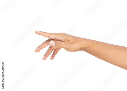 Hand touching or pointing of something on isolated white background.