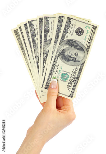 Hand with money isolated on white background