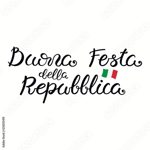 Hand written Italian calligraphic lettering quote Buona Festa Della Repubblica, Happy Republic Day. Isolated objects on white background. Vector illustration. Design element for poster, banner, card.