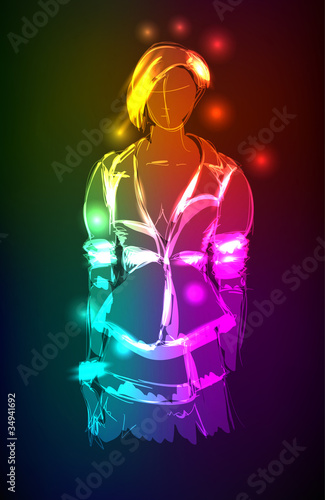 Hand-drawn fashion model from a neon. Vector illustration. A lig