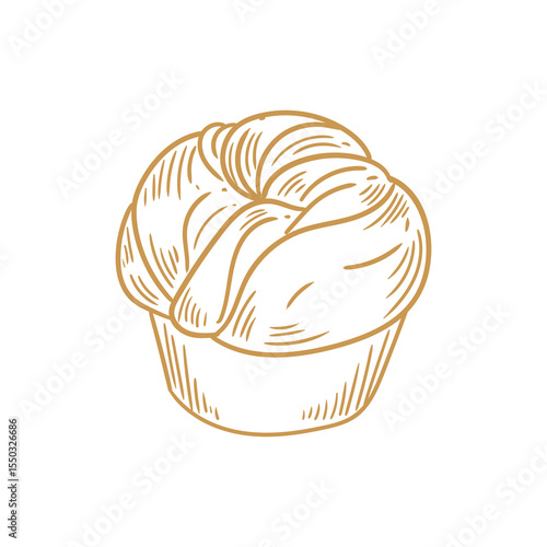 Hand-drawn illustration of brioche bread for bakery or cafe, menus, cards, and graphic design.