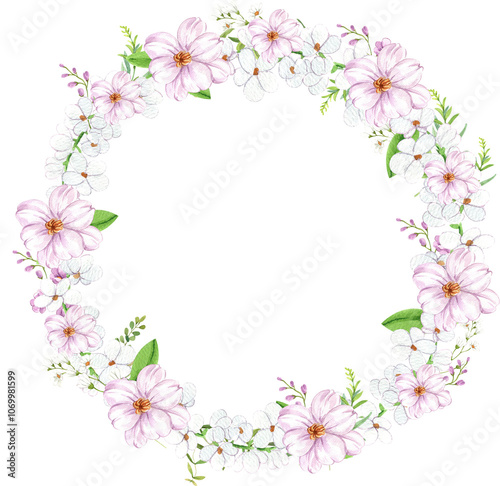 art, bloom, blossom, bouquet, bud, circle, design, flora, flower, fragrance, garden, hand-drawn, hand-painted, illustration, isolated, purple, romantic, spring flower, stem, transparent, tropical, tulip, violet, watercolor, white flower, chaplet
