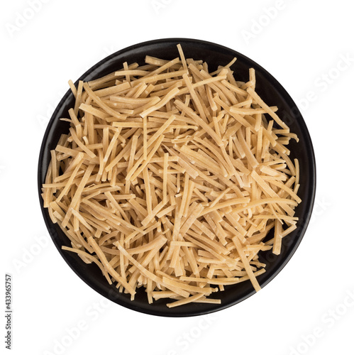 Handmade Turkish Noodles (Turkish Name: Eriste) in black plate. Erishte from Traditional Turkish Cuisine.