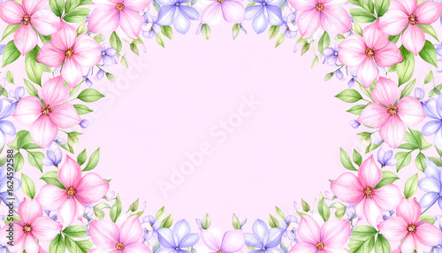 flower, floral, blossom, leaf, leaf, stamen, plant, nature, garden, spring, summer, flora, botany, bouquet, arrangement, chaplet, border, frame, pink, purple, lavandula, periwinkle, blue, green, white, yellow, pastel, soft, vibrant, colourful, light, watercolor, watercolor, painting, illustration, drawing, hand-painted, artistic, design, graphic, texture, brushstroke, blend, background, copy, space, template, edge