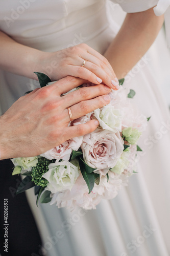 hands bride groom together tenderness couple love