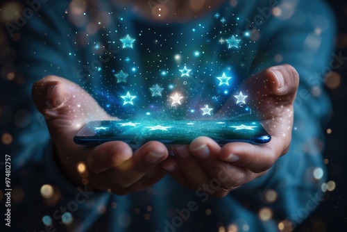 smartphone, magic, star, floating, hand, technology, creativity, wonder, fantasy, mobile device, glowing, futuristic, innovation, mobile phone, sparkle, imagination, hologram, dreamlike, surreal, holographic, digital artwork, interaction