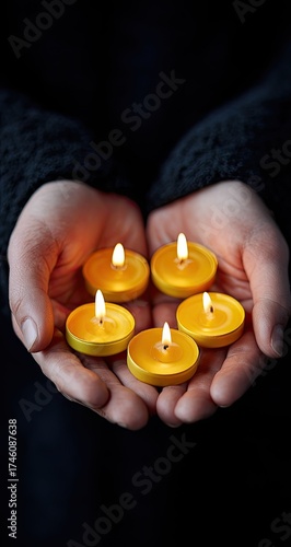 candle, hand, light, flames, burning, warmth, dark, shadow, glowing, yellow, holding, finger, skin, object, closeup, gesture, energy, detail, texture, soft, background, comfort, spiritual, celebration, hope, peace, serenity, calm, minimal, sharpened, isolated, copy space, composition, indoor, studio, vertical, still life, source, illustration, art, creative, design, template, visual, concept, emotion, event