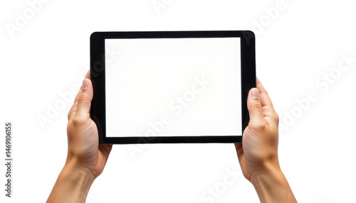 Hands holding tablet for digital learning home office technology bright environment close-up view modern concept