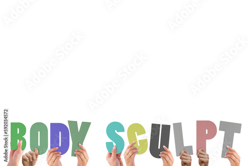 Hands holding up body scuplt