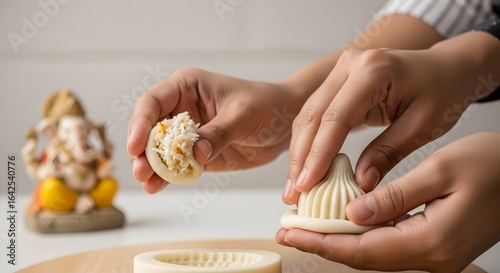 Hands Making Traditional Indian Modak Sweet Dumpling