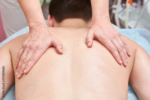 Hands massaging back close up. Person having massage.