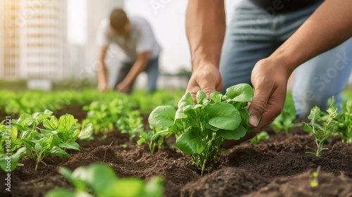 planting, gardening, urban, hand, dirtied, greenery, growth, agriculture, nature, men at work, fresh, environment, sustainable, labor, plant, landscape, city, farming, maintenance, crop, health, earth, outdoors, horticulture, field, sunlight, cultivation, care, development, volunteer, healthy, fresh food, community, harvest, nurturing, vibrant, people, progress, teamwork, rural, resilience, organic, vitality, enhancement, ecosystem, resource, dedication, passion