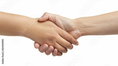 Handshake success two hands shaking white background.
