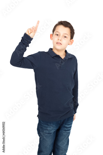 achievement, adult, beautiful, beauty, brightly lit, candid, casual attire, cheerful, children, childhood, copy space, cut-out, cute, ecstatic, excitement, fashion model, happiness, human hand, idea, isolated on white, joy, little boy, looking, people, pointing, kindergartner, schoolboy, smiling, studio shot, success, toothy smile, white background, winning, caucasian, gesticulate, portrait