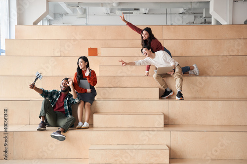 student, friends, smartphone, selfie, break, college, stair, laptop, designer, tablet, man, education, together, group, company, fun, enjoying, teamwork, happiness, crew, connection, woman, young, university, person, youth, campus, modern, 20s, stylish, ethnic, adult, people, inside, looking, studying, successful, wireless, academic, male, meeting, multiracial, clever, collaboration, discussing, diversity, female