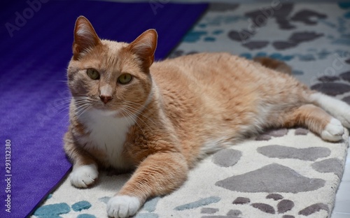 cat, cat, tabby, orange, felino, cute, domestic, white, fur, pet, paw, photogenic, fluffy, animal, pretty, beautiful, lying down, napping, face, resting, looking, nap, mammal, friends, rug, portrait