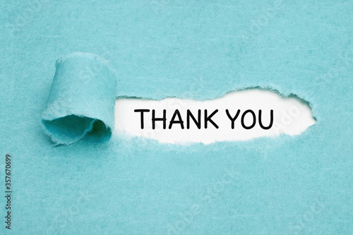 Handwritten Text Thank You Blue Ripped Paper Concept