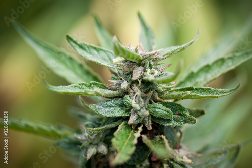 Hanf Cannabis Marihuana Pflanze: Blätter, Blüte und Harz im Detail Macro