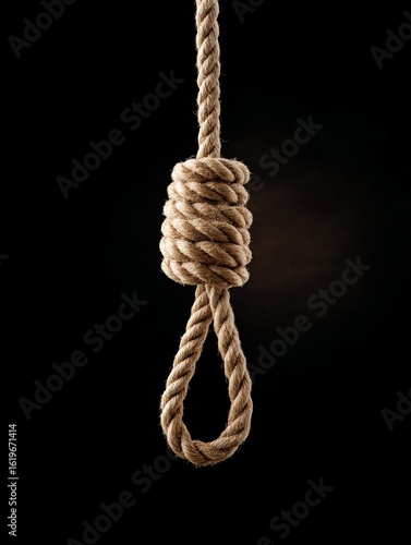 hanging, noose, rope, black background, dangerous, isolated, string, loop, cord, lethal, risky, violence, mental health, social issue, symbolism, tragic, warning, precaution, homicide, self-destruction