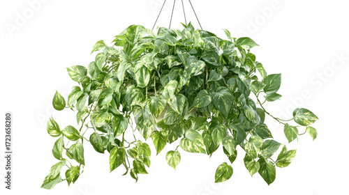 Hanging pothos houseplant with trailing vines, background isolated on a Transparent background, PNG file.
