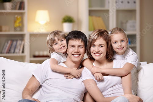 people, family, home, children, little, girl, father, caucasian, woman, adult, togetherness, daughter, interior, female, smiling, man, group, indoor, happiness, eltern, 30s, young, room, lifestyle, mother, embracing, male, affectionate, mature, son, offspring, cute, portrait, 4, boy, fun, love, expressing, sofa, sitting, positivity, smile, joy, looking, white, domestic, night, lamp, evening