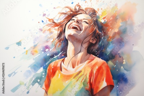 paint, portrait, art, watercolor, adult, laugh, woman, person, abstract, cartoon, drawing, vignetting, happiness, t-shirt, face, photo, clothing, yellow, happy, human, photo, smile, teeth, head, relaxation, creativity, female, fun, enjoyment, shouting, looking up, closeup, vibrant color, eyes closed, young adult, coiffure, long hair, carefree, cheerful, head shot, apparel, motion, joy, smiling, waist up