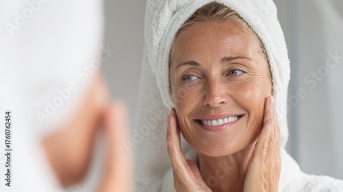happy, 50s, model, skin, smiling, mature, old lady, pampering, healthy, skincare, treatment, cosmetic, concept, ageing, beauty, ageing, wellness, rejuvenation, elegance, graceful, self-confidence, self-esteem, radiant, glowing, vibrant, confident, sophisticated, elegant, stylish, femininity, positive, content, satisfied, contentment, self-assured