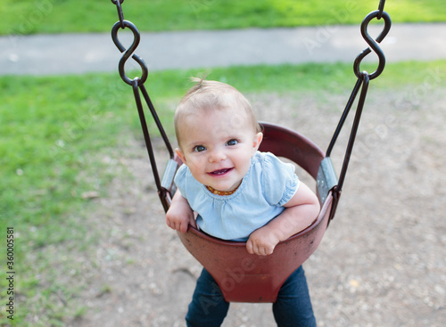 toy, swinging, swing, summer, smiling, smile, playing, playground, playful, park, outdoors, nature, little, leisure, grass, fun, cute, baby, adorable, caucasian, white, girl, female, person, people, newborn, newborn, baby, infant, infant, children, children
