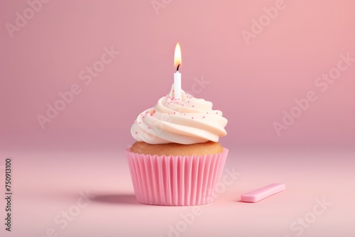 Happy birthday cupcake with candle