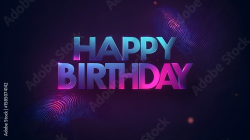 Happy birthday text with neon glow effects and abstract lines on a dark purple background
