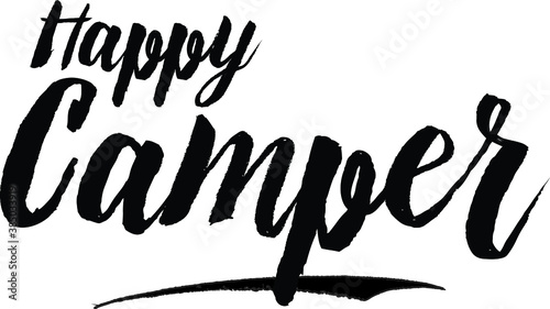Happy Camper Bold Calligraphy Black Color Text On White Background