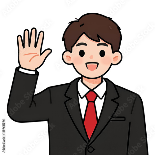 Happy cartoon boy in suit waving