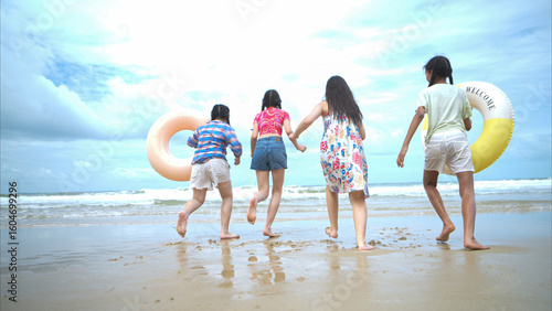 asian, beach, blue, cheerful, children, childhood, children, cloud, coast, cute, daughter, enjoy, freedom, friends, friendship, fun, girl, group, hand, happiness, happy, holding, holiday, island, children, lifebuoy, lifestyle, love, nature, ocean, play, playful, relax, run, sand, sea, sky, summer, sun, sunlight, teenage, together, travel, trip, tropical, vacation, water, wave