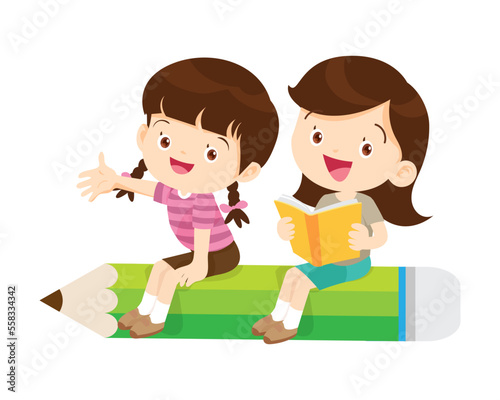 Happy Children reading book Back to School Concept kids and book