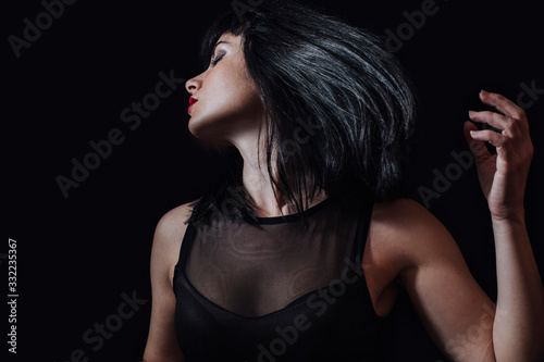 woman, dancing, portrait, smile, background, black, smiling, young, hair, girl, happy, beautiful, face, fun, female, adult, woman, happiness, isolated, beauty, person, positive, studio, laugh, people, model, lady, joy, expression, pretty, fashion