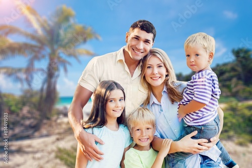 Happy family fun together on a sandy beach