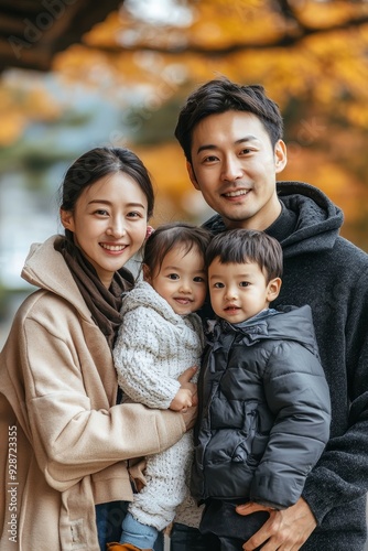 Happy family standing in a park, Generative AI
