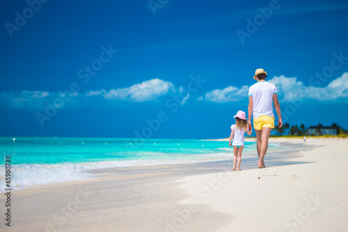 Happy father and his cute little daughter at beach