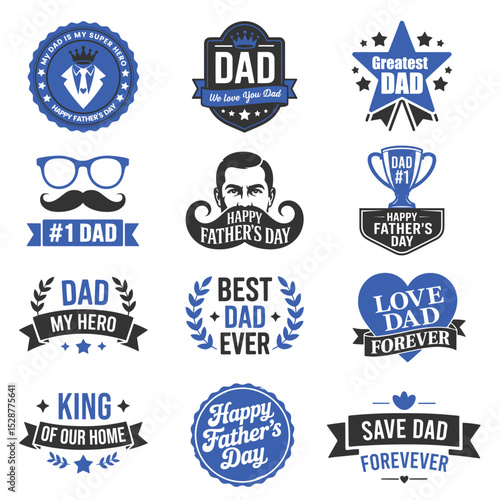 Happy Father’s Day Design Collection – Vintage Style Set in Blue and Black on Light Background