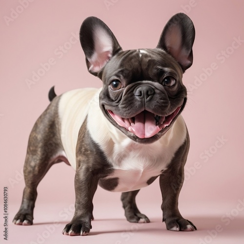 Happy French Bulldog on a Pink Background. Generative by Ai.