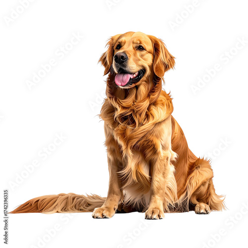 Happy Golden Retriever Sitting with Tongue Out, isolated on a transparent background