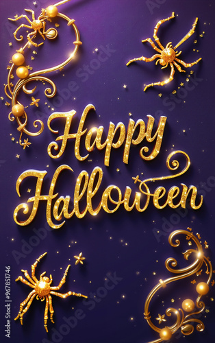 happy halloween card with spider calligraphy flourishing luxury design high class illustration