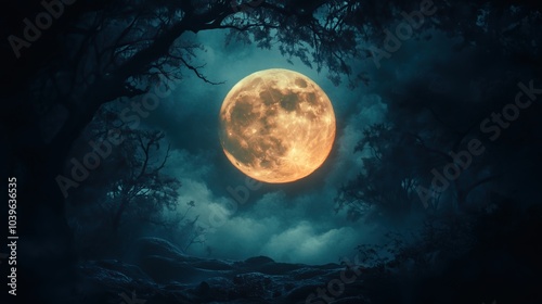 Happy Halloween spooky scary moon night scene horror landscape