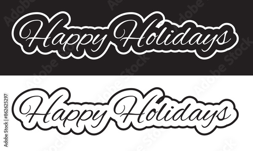 Happy holidays lettering design. Seasonal greeting card template. Creative calligraphy for Holiday greeting cards, banner. Modern marker lettering. isolated on white and black background. EPS 10