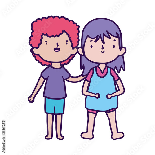 happy little boy and girl cartoon character